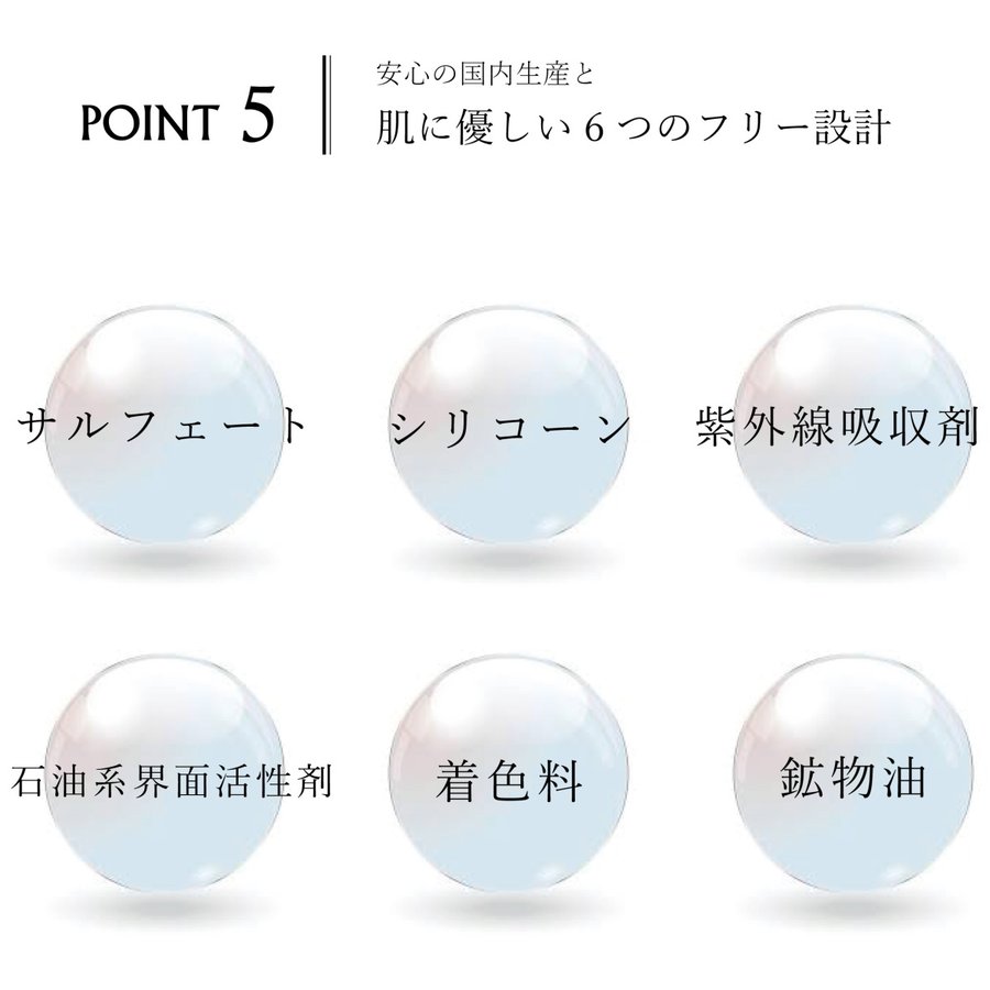 ・6つのフリー設計(サルフェート・シリコーン・紫外線吸収剤・石油系界面活性剤・着色料・鉱物油)