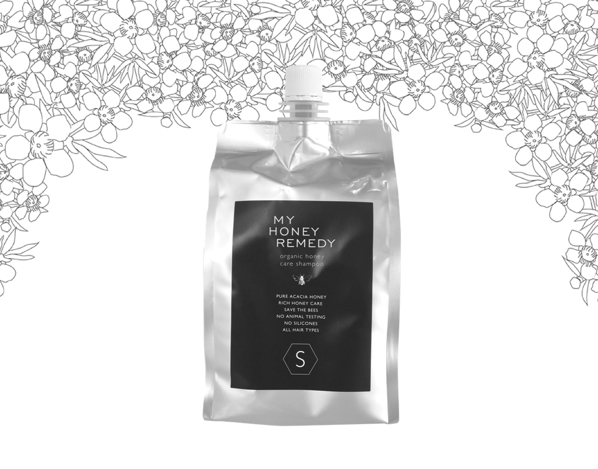 そこで、マイハニーレメディには加熱していない「生はちみつ」を20%配合。生きた酵素が髪を覆い、界面活性剤に頼ること無く、天然の洗浄力で頭皮から髪を洗い上げます。